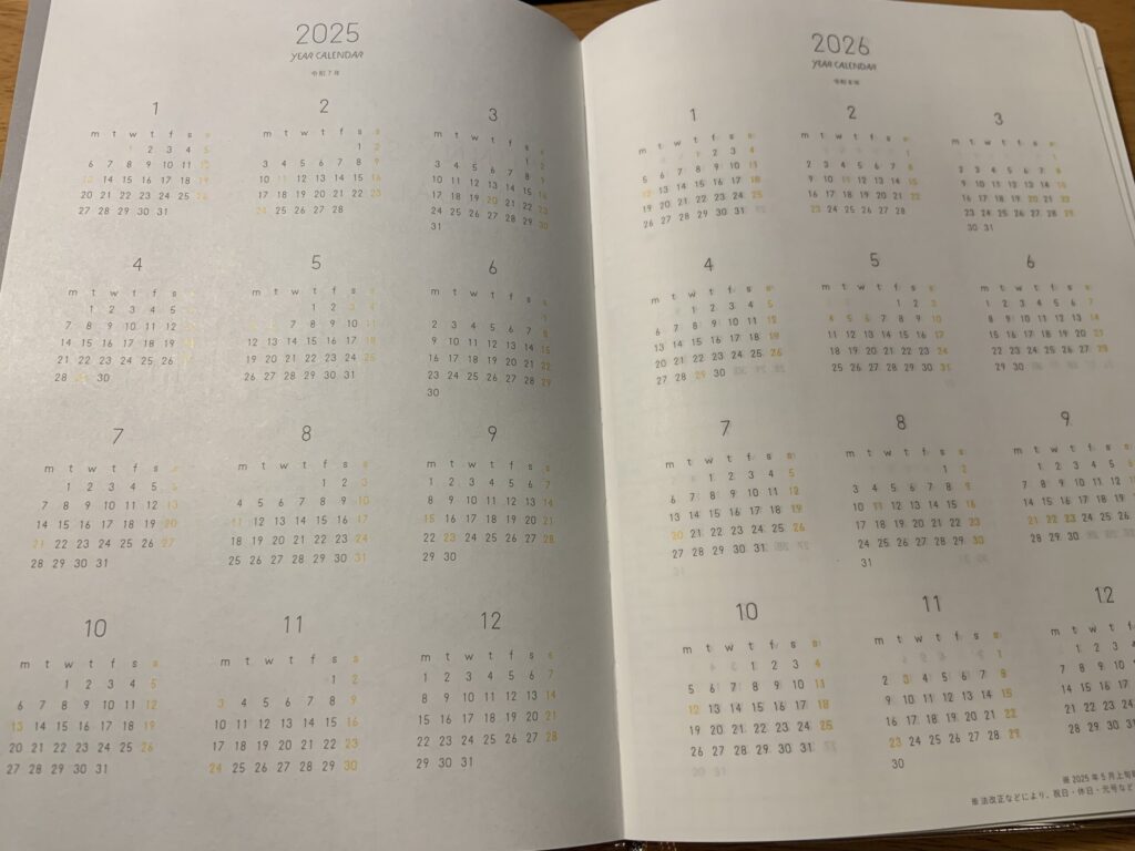 それでは、このたび私が購入したウィークリー手帳の中身を紹介したいと思います。