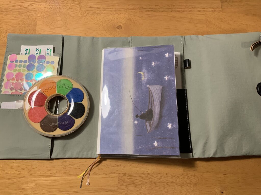 そして、最近のお気に入り、「シャチハタ」で購入した持ち運びができるドーナツ型のインクパッドと一緒に。