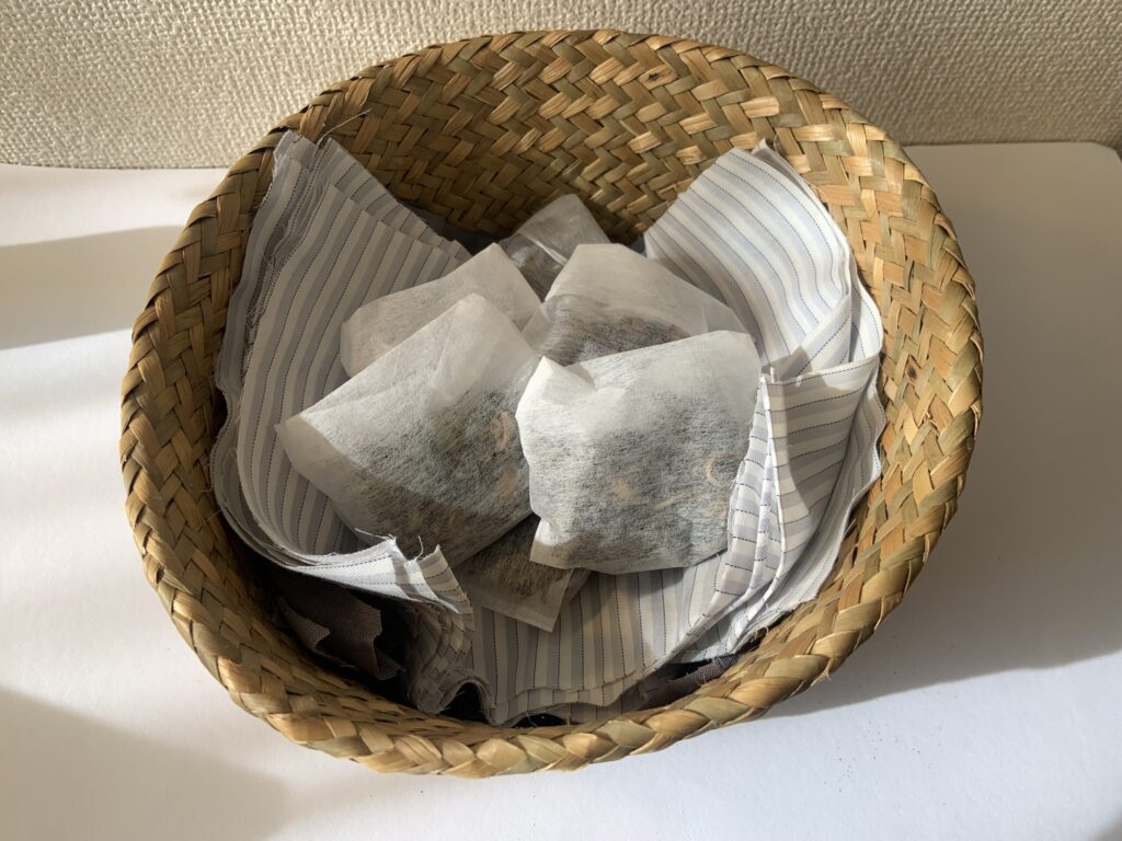 できるだけ最後まで使ってありがとうと言ってさよならしたい。そこで洋服などの布ものはカットしてお掃除のミニ雑巾に、賞味期限の切れたハーブティーはお茶パックに入れて入浴剤に、使わない固形石鹸は、シューズボックスの消臭剤にして工夫しました。
