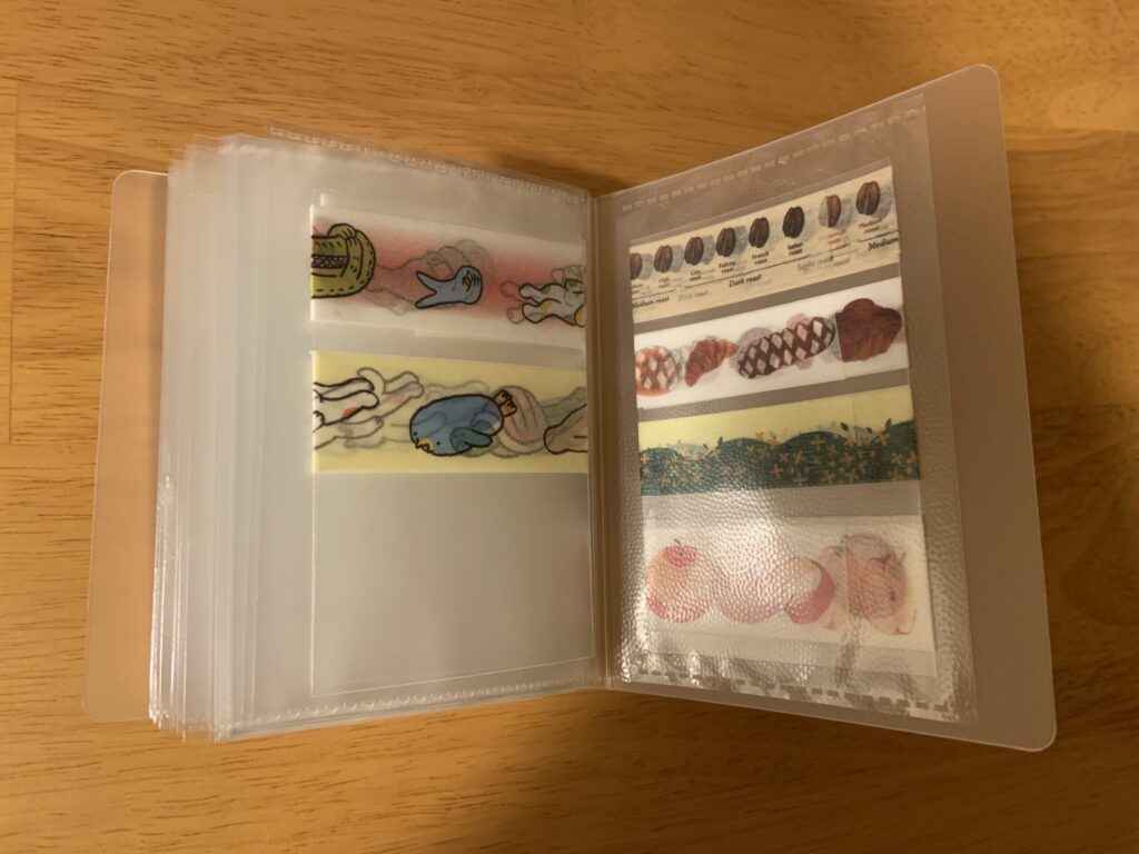 現在はこんな感じで収納しています。左側の小さなカードポケットには、シールや付箋などを(ケアリーブも忘れずに)。