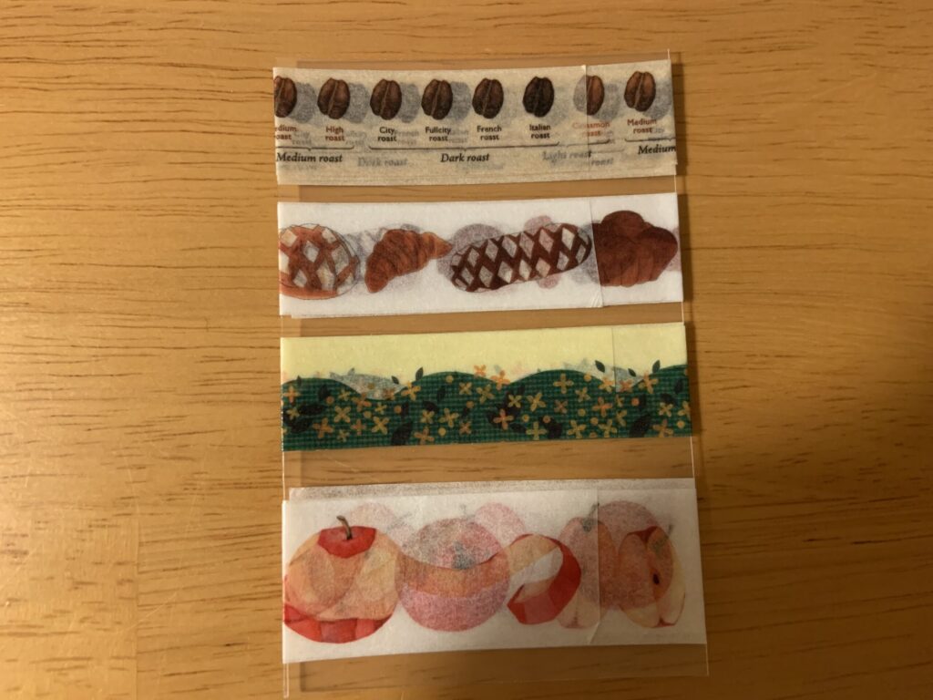 マスキングテープもロールごと収納すると嵩張るのでよく使うものだけをクリアファイルをカード状にカットしたものに貼って携帯しています。